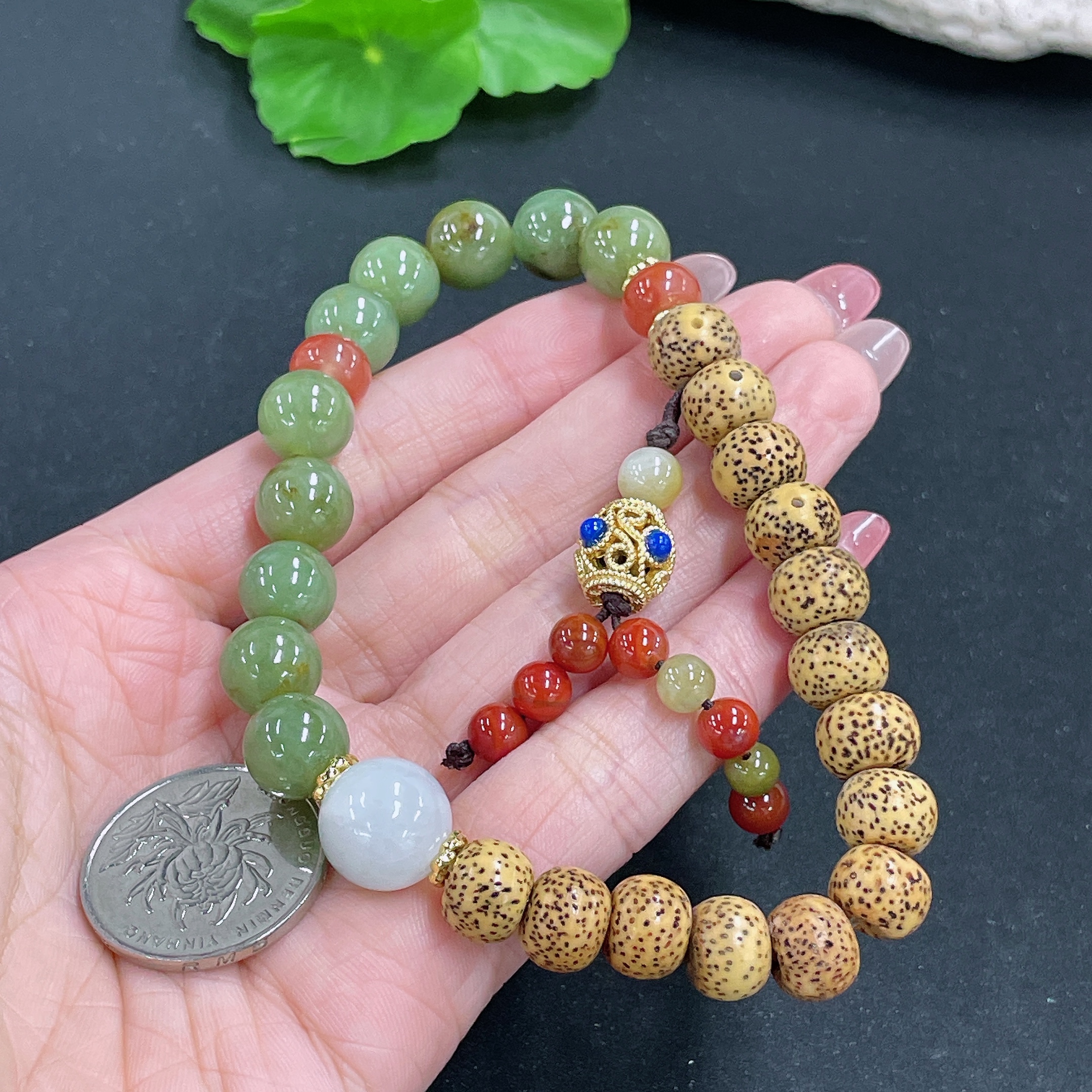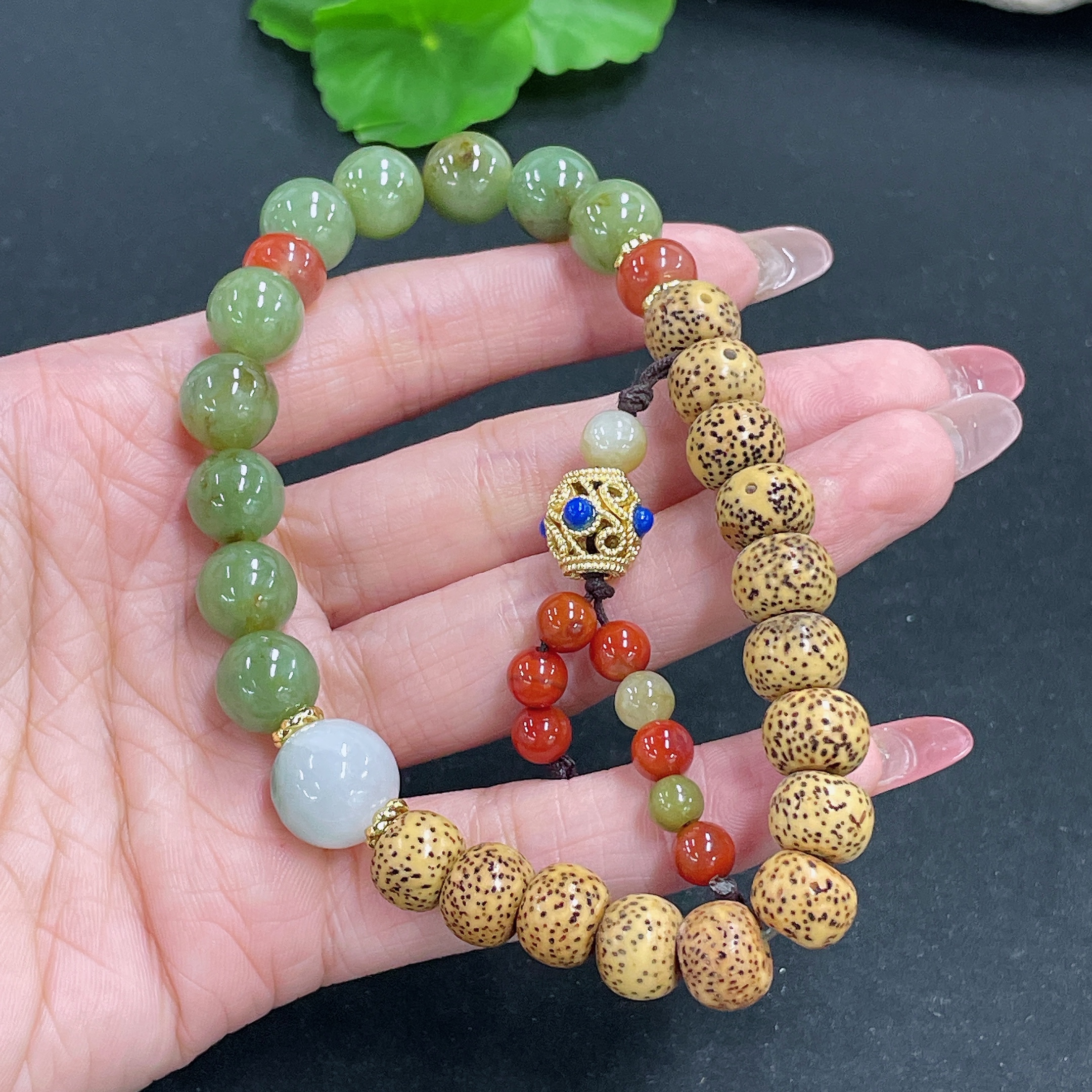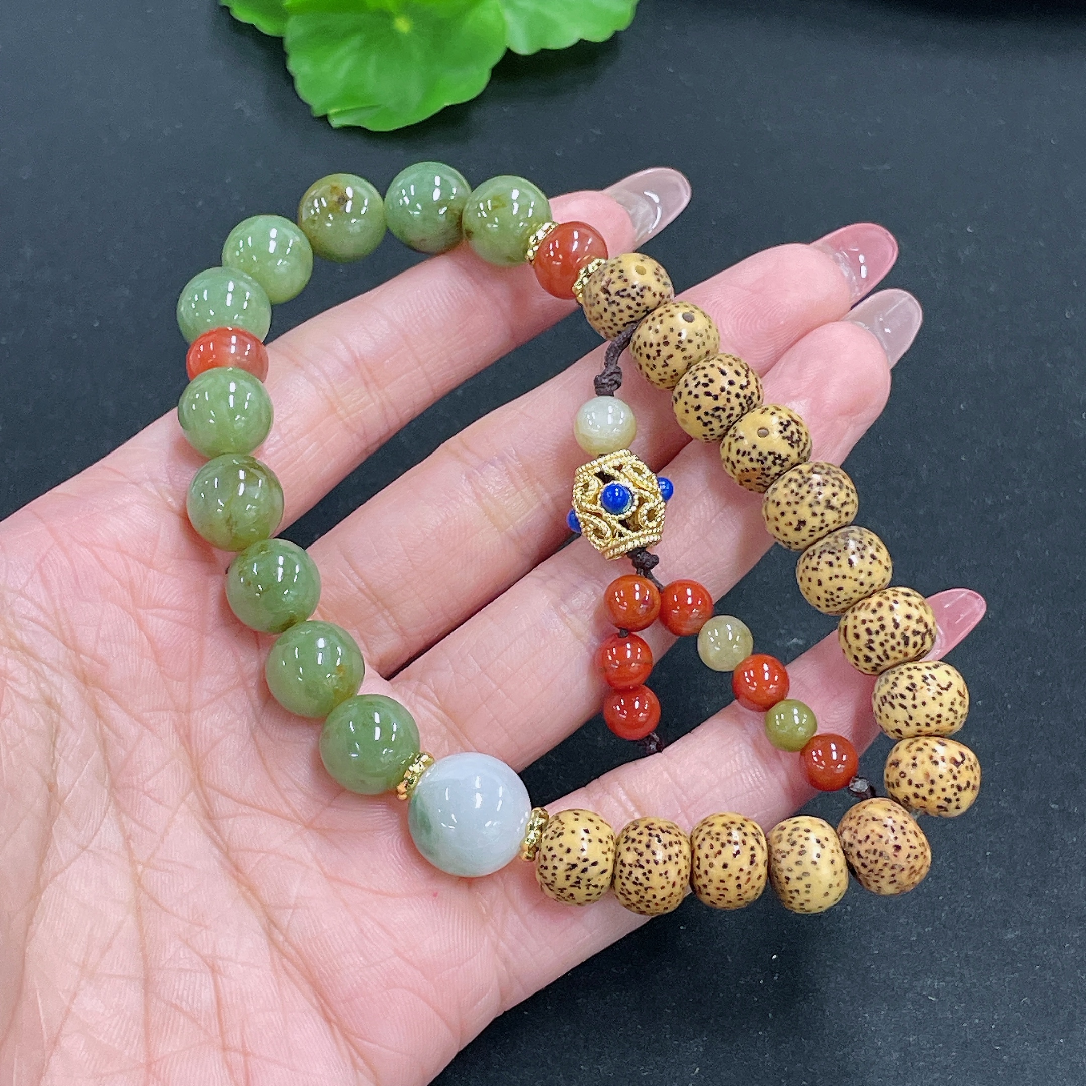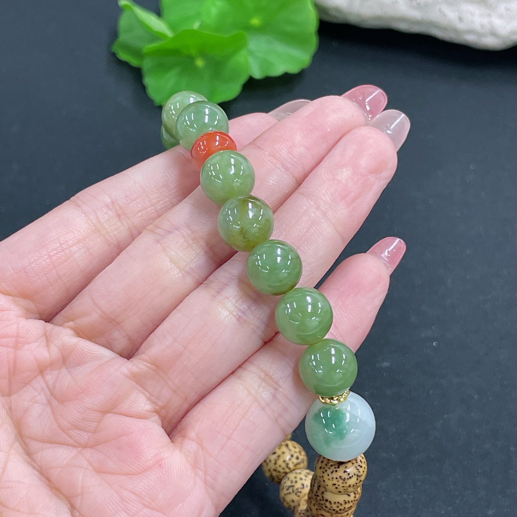 Jadeite Bracelet Non-Gold Beaded Non-Grade A Total Weight Approx.40g Size 13.1mm
