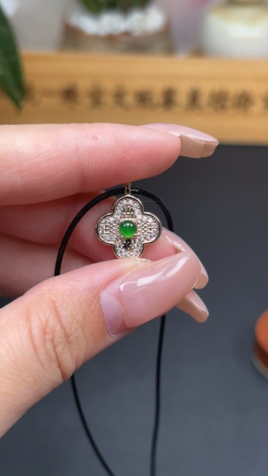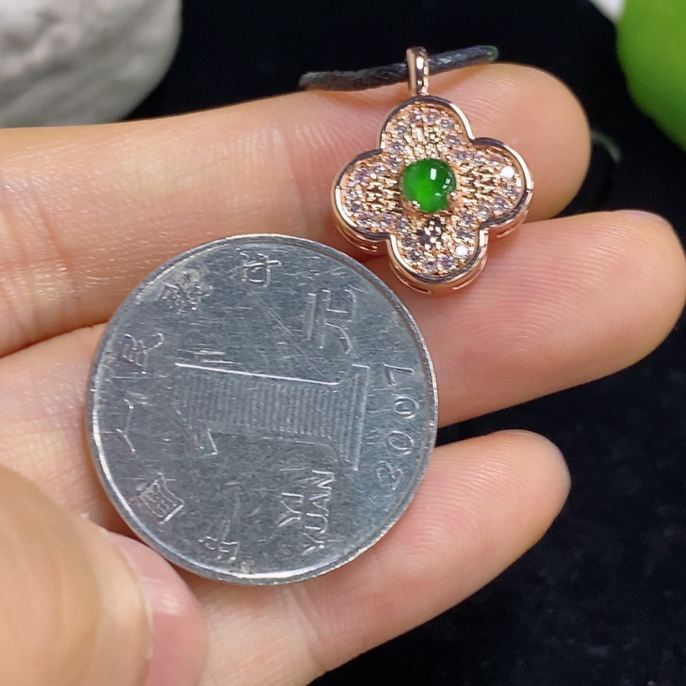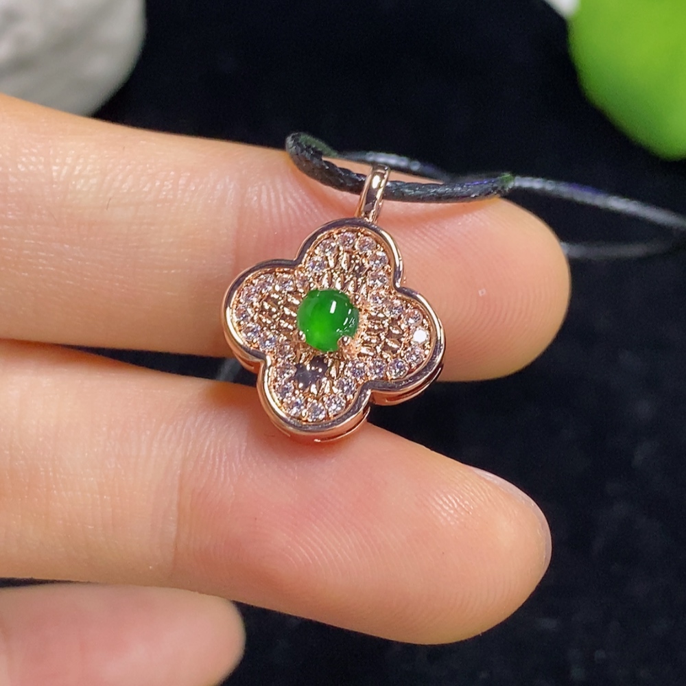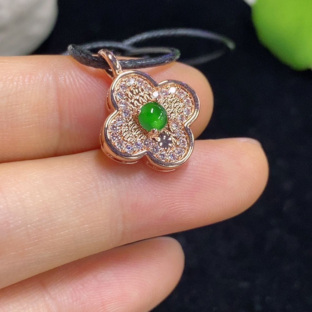 Jadeite Inlaid Pendant Total Weight Approx. 2.6g (Non-Gold Inlaid) (Including Rope Weight)