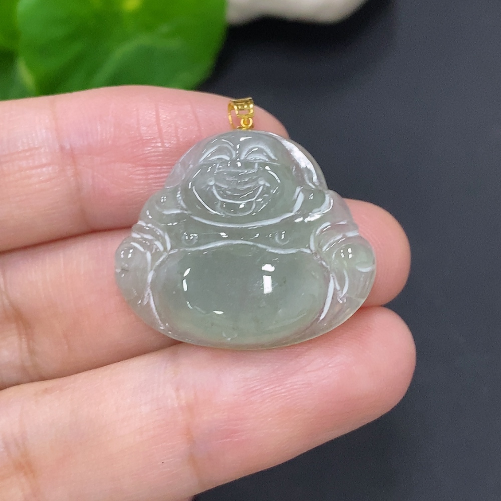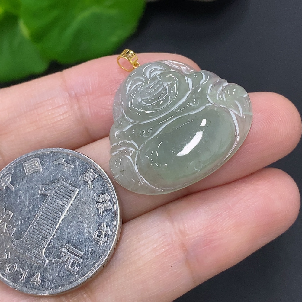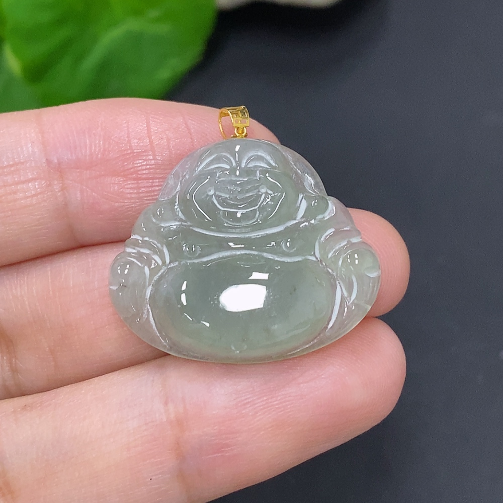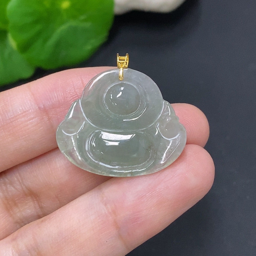 Jadeite Buddha Pendant with 18K Gold Clasp, Total Weight Approximately 4.8g