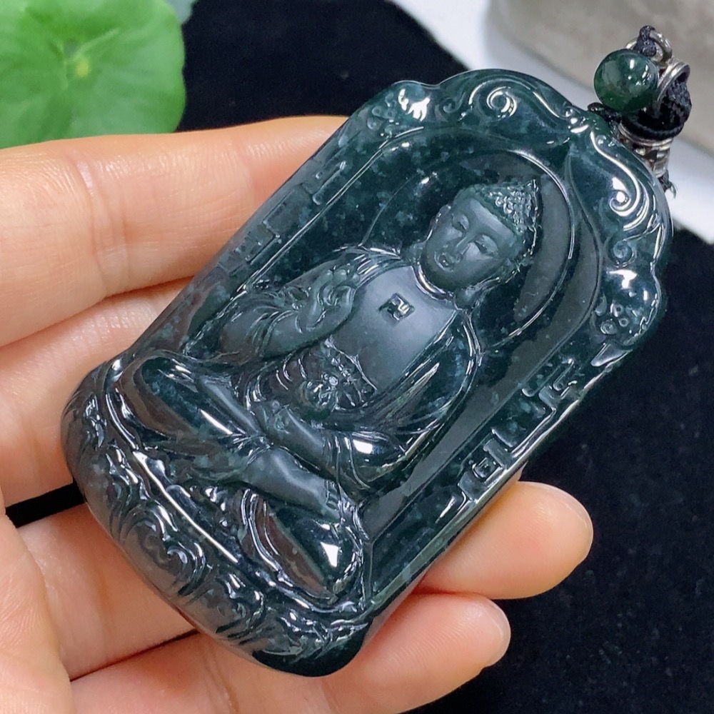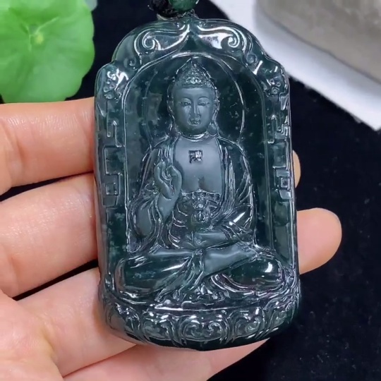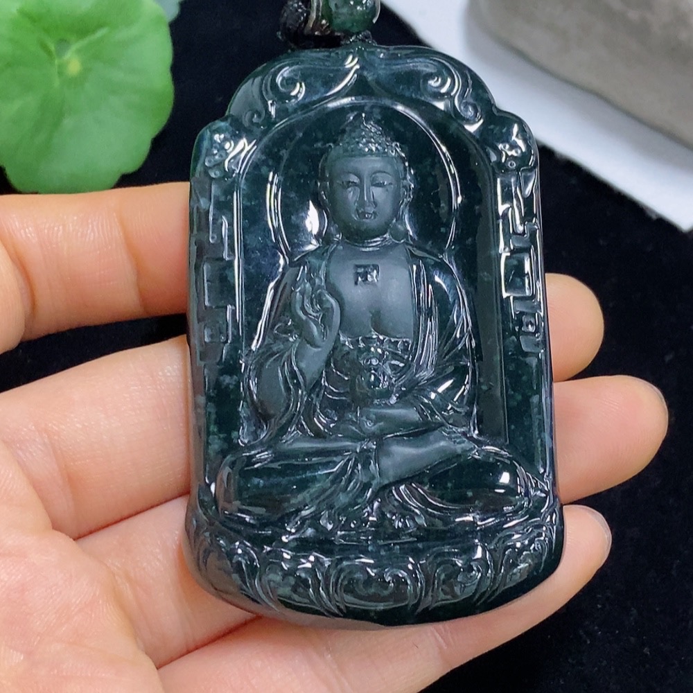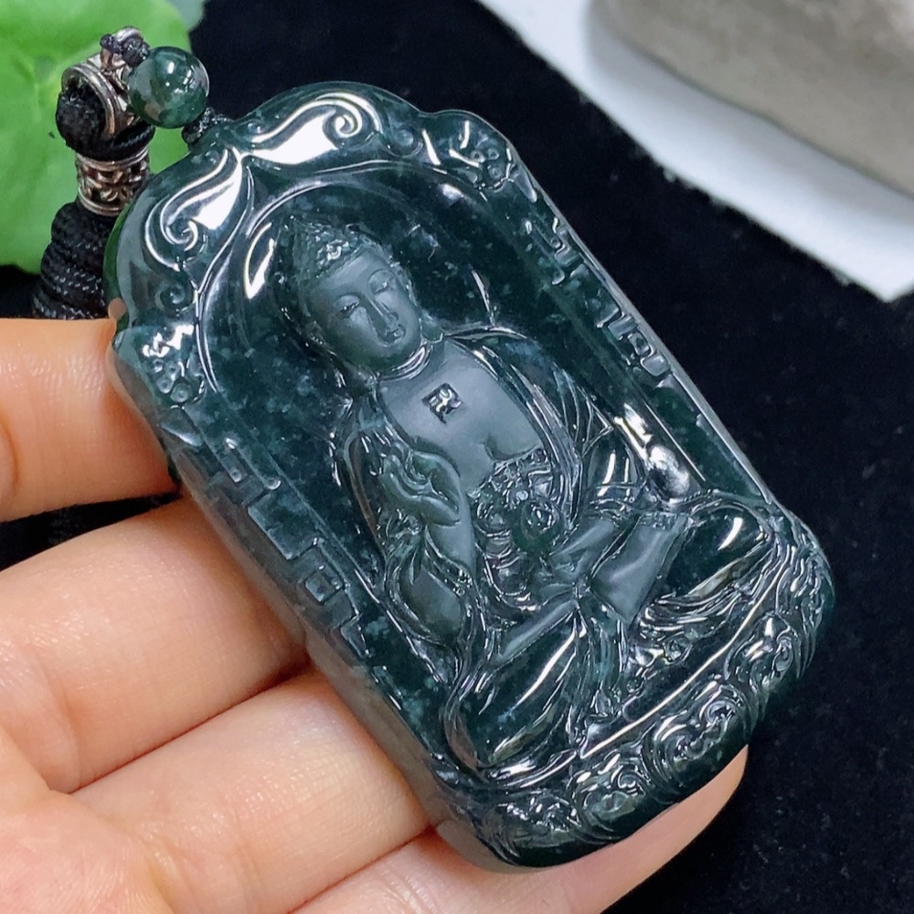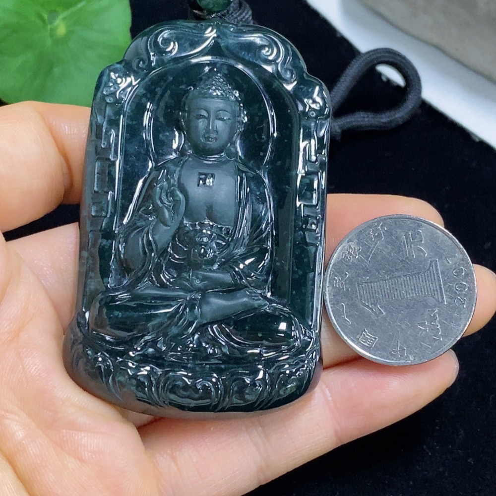 Jadeite Pendant Buddha Amulet Total Weight Approx. 68g Including Rope
